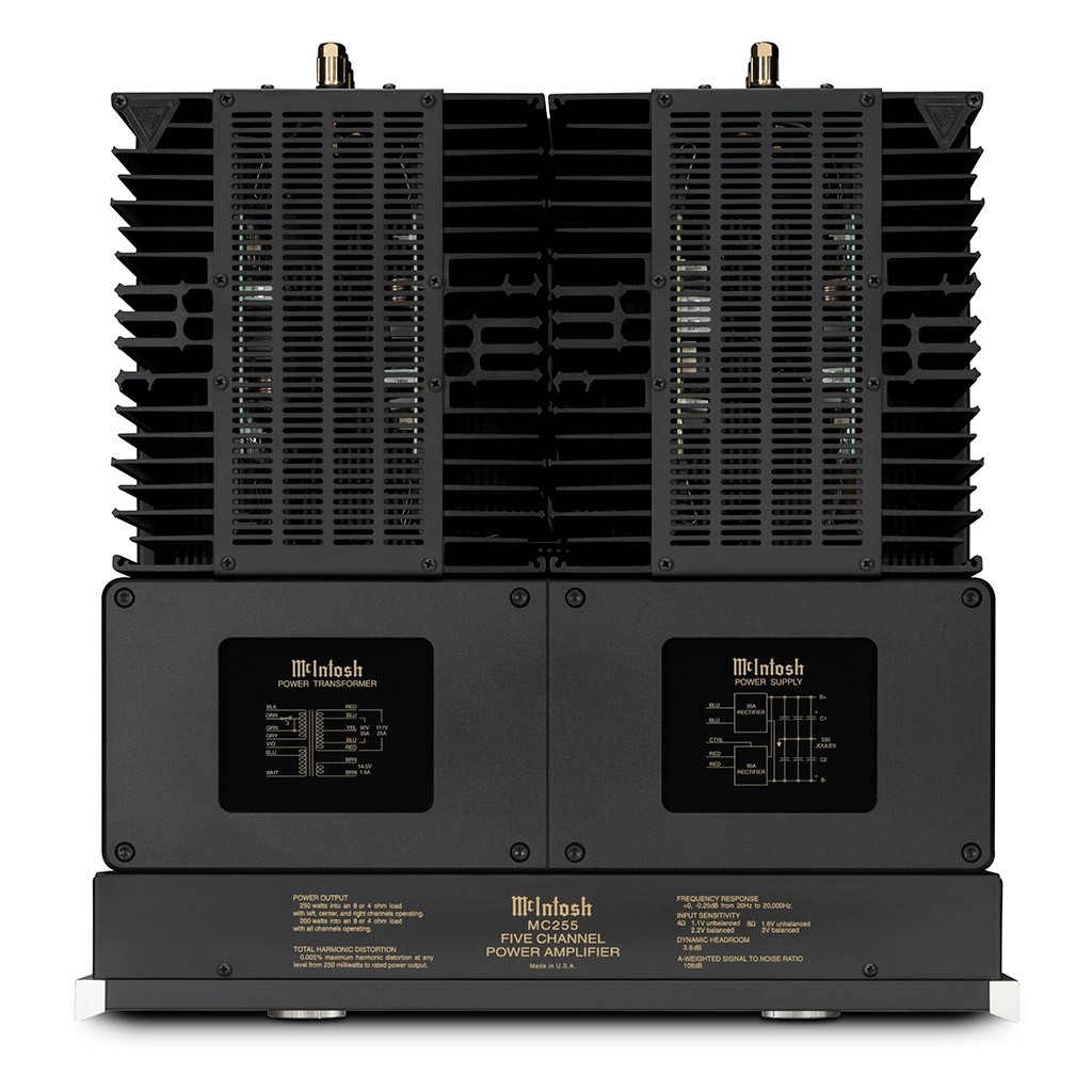 Amplificatore finale di potenza a 5 canali con circuitazione Push-Pull complementare ad accoppiamento diretto e tecnologia proprietaria DPM (Dynamic Power Management), in grado di erogare la medesima potenza su 4 e 8 Ohm - configurabile per uscita a 3 canali con potenza di 250 Watt per canale oppure a 5 canali con potenza di 200 Watt per canale - possibilità di impiego simultaneo per 2 zone separate (zona A 3 canali, zona B 2 canali) - nuovo Power Output Meter proprietario TripleView con 3x VU-Meter a lettura meccanica individuale alloggiati in una singola finestra larga 38 cm, dotata di retroilluminazione Direct LED - stadio di alimentazione e capacità di filtro potenziati con prestazioni delle basse frequenze e della gamma dinamica senza precedenti (incremento di oltre il 100% rispetto al modello di generazione antecedente) - trasformatore di potenza e isolamento toroidale con avvolgimento speciale ultra silenzioso - efficientissimo sistema di dissipazione composto da 4x McIntosh Monogrammed Heatsinks con logo Mc sagomato sulle alette e transistor ad alta corrente - tecnologie di protezione proprietarie dei diffusori e di prevenzione del clipping Power Guard e Sentry Monitor - 5x ingressi bilanciati XLR e 5x ingressi sbilanciati RCA - funzione Auto-Off escludibile - ingressi e uscite trigger Power Control - dimensioni (L x A x P) 445 x 239 x 533 mm - peso 40,6 Kg - Glass con logo Wally