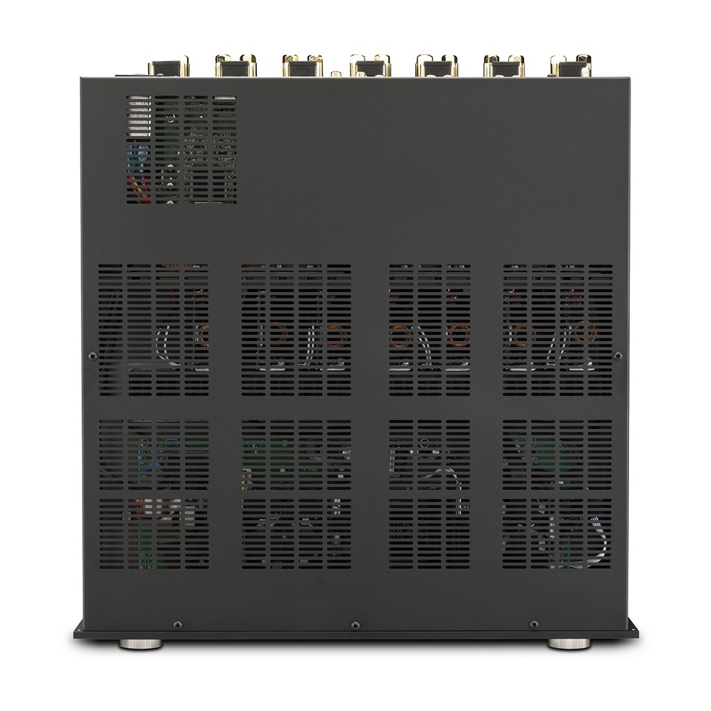 Sintoamplificatore Home Theatre 8K/60 Hz / 4K/120 Hz multicanale 7.2 / 5.2.2 con possibilità di espansione fino a 11.2 / 7.2.4 canali - potenza per canale reale, con tassi di distorsione bassissimi, costanti a qualunque livello e con tutti i canali amplificati simultaneamente, di 150 Watt per canale su 4 Ohm e 120 Watt per canale su 8 Ohm - installabile in un rack in standard 3U mediante apposite staffe rimovibili in dotazione oppure collocabile su un tavolino portaelettroniche tradizionale - supporto completo per formati High Dynamic Range HDR10+, HLG, Dolby Vision - compatibile con i principali e più avanzati formati audio digitali compresi DTS-HD Master Audio, DTS:X, Dolby TrueHD e Dolby Atmos - software di calibrazione e di correzione dell'acustica ambientale allo stato dell'arte Dirac Live con ingresso jack per il microfono di rilevazione (in dotazione) - separazione pre/finale implementata indipendentemente su ciascun canale, con possibilità di aggiungere finali di potenza esterni per amplificare qualunque canale - circuito di conversione digitale/analogico Audiophile Grade basato su 7x DAC Premium con processamento a 32 bit con riproduzione di formati PCM fino a 24 bit / 192 kHz - sintonizzatore radio - controllo toni Bass/Treble - sistemi proprietari Power Guard e Sentry Monitor per la salvaguardia dei diffusori, per la prevenzione del clipping e per la protezione da sovraccarichi e cortocircuiti - circuito Signal Sensing On/Off per l'accensione e lo spegnimento automatici mediante rilevazione della presenza di segnale - 5x porte HDMI 8K/60 Hz / 4K/120 Hz, HDCP 2.3, rec. 2020 (BT.2020), spazio colore 4:4:4, 3D Video Pass-Through (4x ingressi, 1x uscita con supporto eARC/ARC) con banda passante di 40 Gbps - ingressi digitali: 2x coassiali elettrici RCA, 2x ottici Toslink - 4x uscite sbilanciate RCA per collegare canali addizionali (ad esempio Dolby Atmos) - 2x uscite sbilanciate RCA per subwoofer - interfaccia avanzata di impostazione e controllo via Ethernet mediante browser di navigazione internet - controllabile via IR, RS232 e Web IP tramite porte jack 3,5 mm e Ethernet RJ45 dedicate - porte Data/Power Control - telecomando e microfono con asta in dotazione - dimensioni (L x A x P) 445 (483 con staffe laterali per rack installate) x 154 x 533 mm